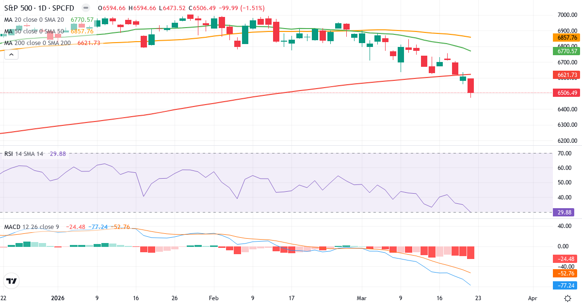 Baserat på trendanalys (SMA50/SMA200) och MACD-trend (positiv/negativ på daglig + veckovis basis). Uppdaterad 21. mars 2026.